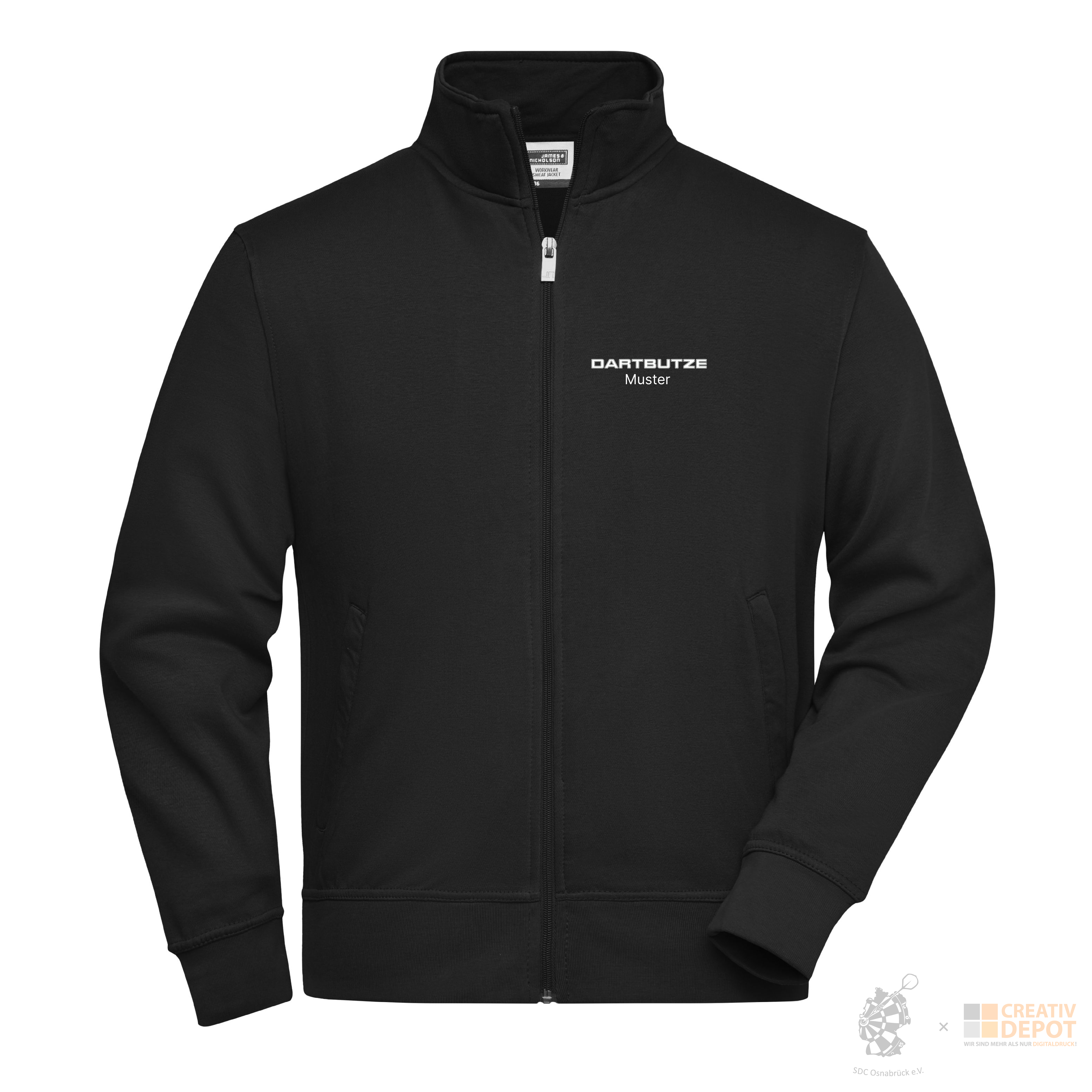 Die DARTBUTZE Sweatjacke mit Stehkragen ist die hochwertigste Jacke im Sortiment und steht für einen souveränen, professionellen Vereinsauftritt. Der strukturierte Schnitt in Kombination mit dem Stehkragen verleiht der Jacke eine besonders wertige Anmutung – ideal für Spieltage, offizielle Termine oder den repräsentativen Einsatz.